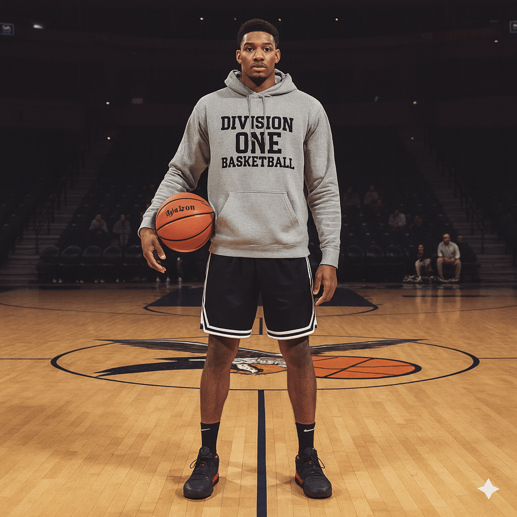 Stay game-ready in our premium black and grey hoodie featuring bold Division One Basketball lettering. Built with a soft heavyweight cotton blend for comfort, durability, and everyday performance. Perfect for athletes who live the culture on and off the court.